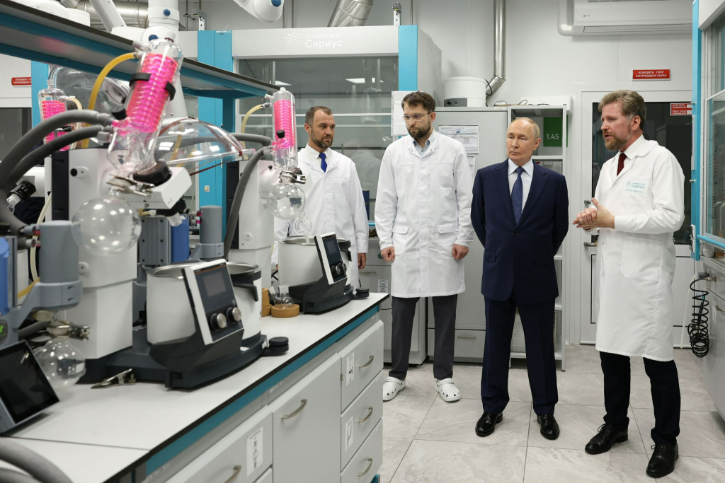 Президент России Владимир Путин посетил Научно-технологический университет «Сириус», где осмотрел уникальный лабораторный комплекс — крупнейший в стране в области наук о жизни и смежных дисциплин, сообщает пресс-служба федеральной территории «Сириус».