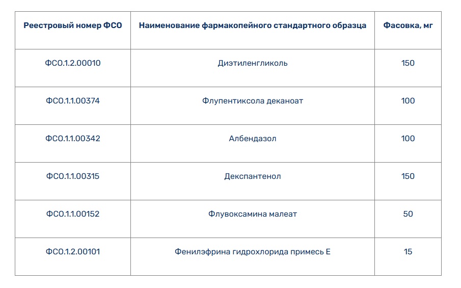 Научный центр экспертизы средств медицинского применения Минздрава РФ выпустил 6 новых типов фармакопейных стандартных образцов (ФСО) государственной фармакопеи.